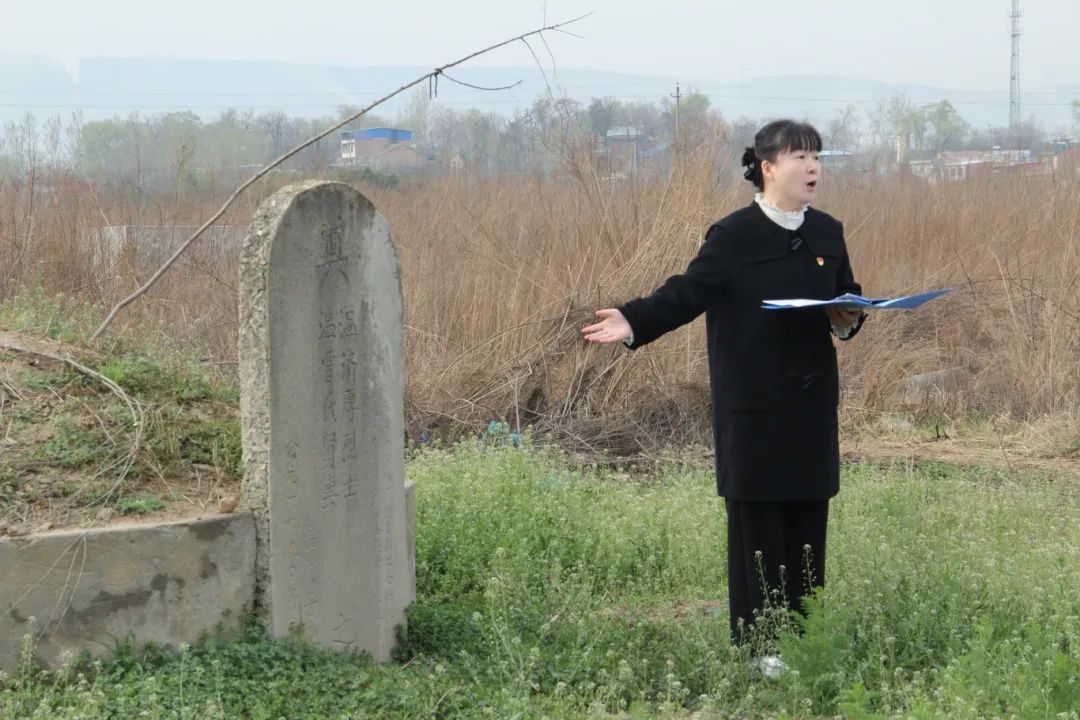 全体师生在烈士墓前庄严肃立,垂首默哀,深切缅怀革命先烈。温建民以质朴语言讲述了温济厚烈士生平事迹,再现其“舍小家、为大家”投身革命的壮烈抉择。烈士“笔墨为枪、热血为旗”的赤子情怀令在场师生为之动容。