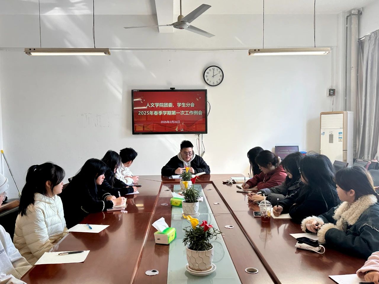 2月26日下午,人文学院团委、学生分会于博识楼1318会议室召开2025年春季学期第一次工作例会,学生会各部门负责人参加会议,团委副书记周伯晓主持会议。