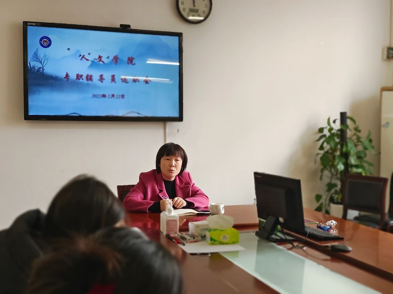 2月22日上午,人文学院在博识楼1318会议室召开2022年度专职辅导员述职大会。我院党总支副书记、副院长张晶主持会议,全体专职辅导员参加。