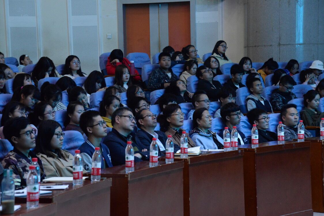 10月31日晚七点半,人文学院“悦读经典、书香人文”活动持续进行。三百余名师生相约陶然楼演艺厅,聆听人文学院韦爱萍教授带来的“人文学院百部经典名著导读之三——《庄子》”。渭南师范学院副校长程书强、人文学院院长曹强,教师王晓红教授、张瑞芳博士、其他外院教师、慕名而来的校外国学爱好者与人文学院18级全体同学参加了此次讲座。本次讲座由中文系主任赵前明副教授主持。