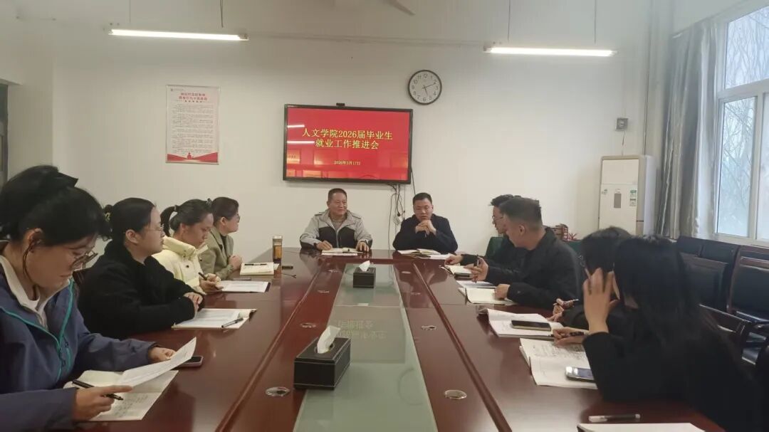 3月17日下午,人文学院在博识楼1318会议室召开2026届毕业生就业工作推进会。我院处科级干部及毕业班辅导员参加会议,党总支副书记王昱主持会议。