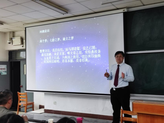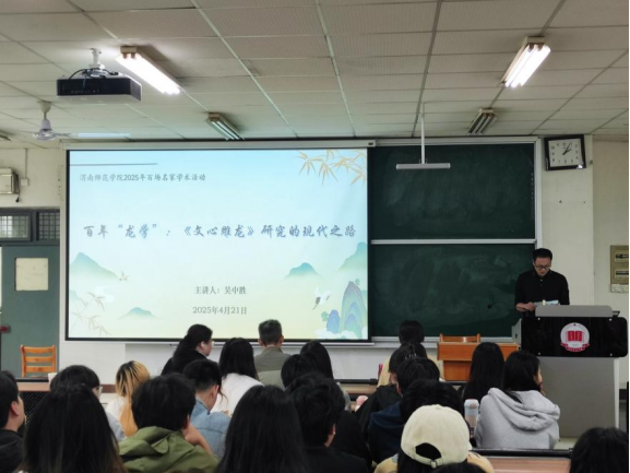4月21日下午,人文学院在博识楼举办“百年‘龙学’:《文心雕龙》研究的现代之路”学术讲座。本次讲座特邀赣南师范大学二级教授、博士生导师吴中胜教授担任主讲嘉宾。中文系主任方科平、刘鑫教授及百余名师生参加讲座,活动由副院长雷炳锋主持。